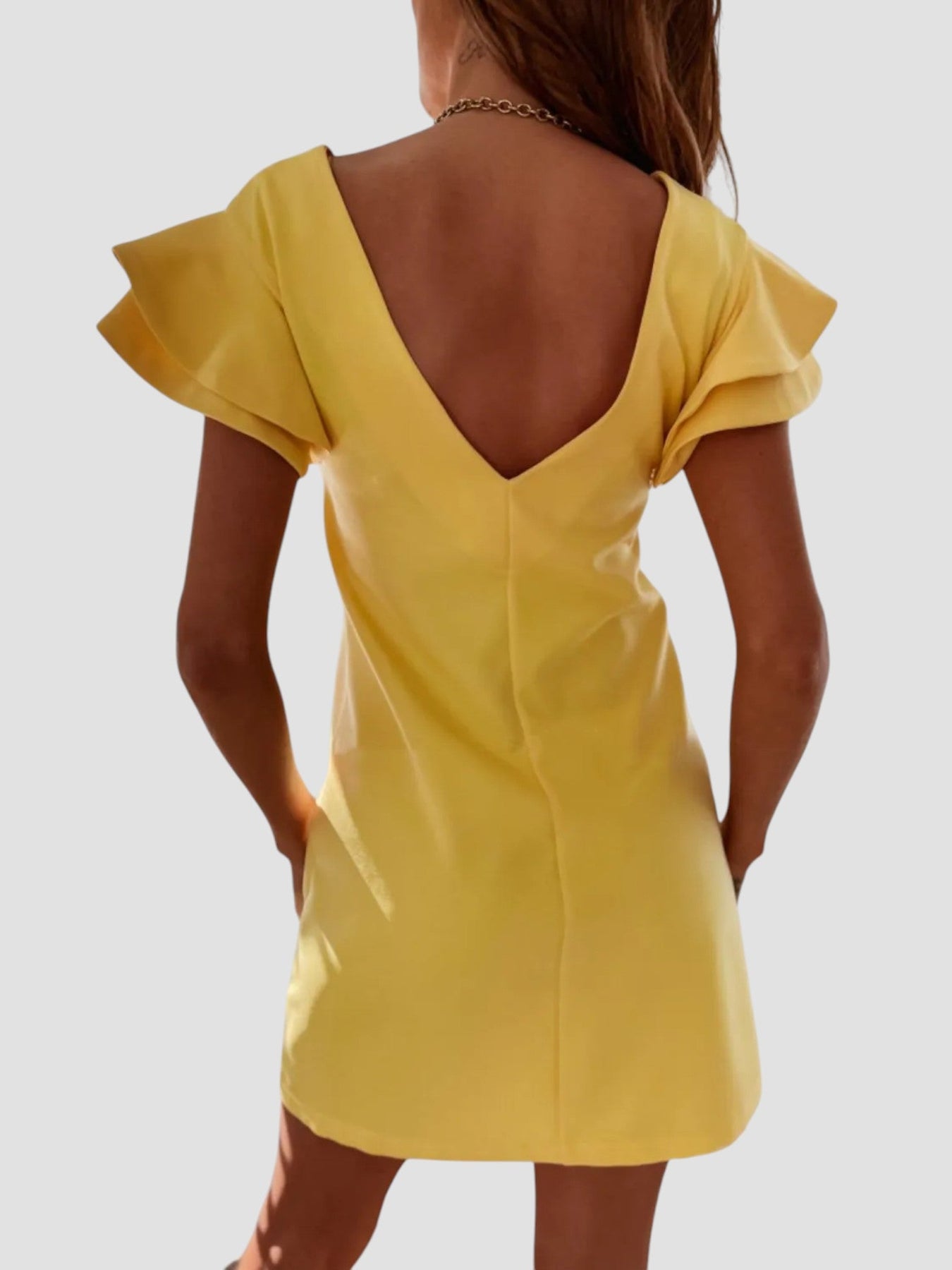 Das Kleid ‘Clarissa’ ist ideal für alle, die einen frischen und raffinierten Stil suchen. Mit doppelten Rüschensäumen verleiht es einer minimalistischen Linie eine feminine Note, perfekt für den Sommer.