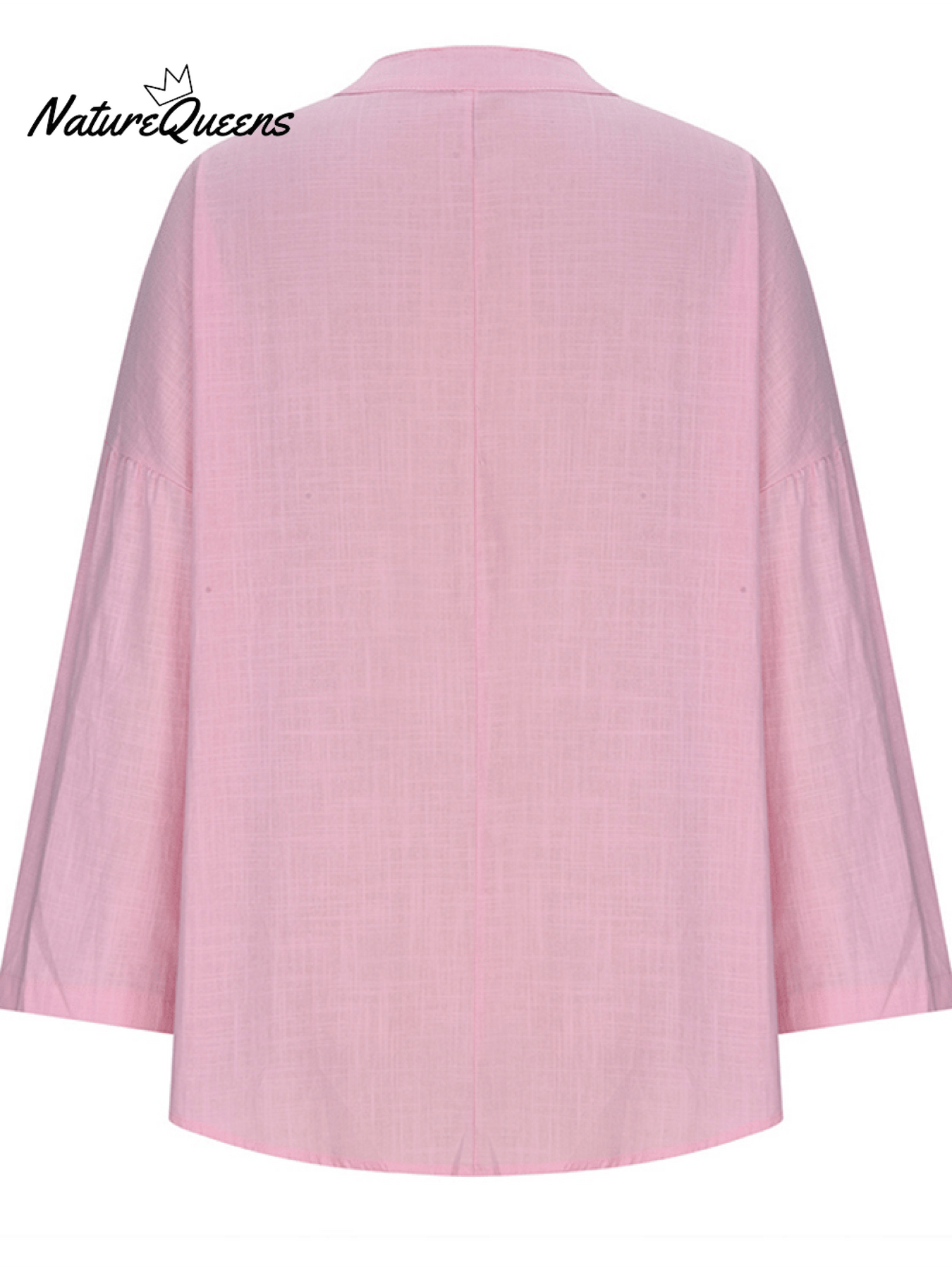 Damen Baumwolle Langarm Rundhals Einfarbig Lockeres Strandshirt