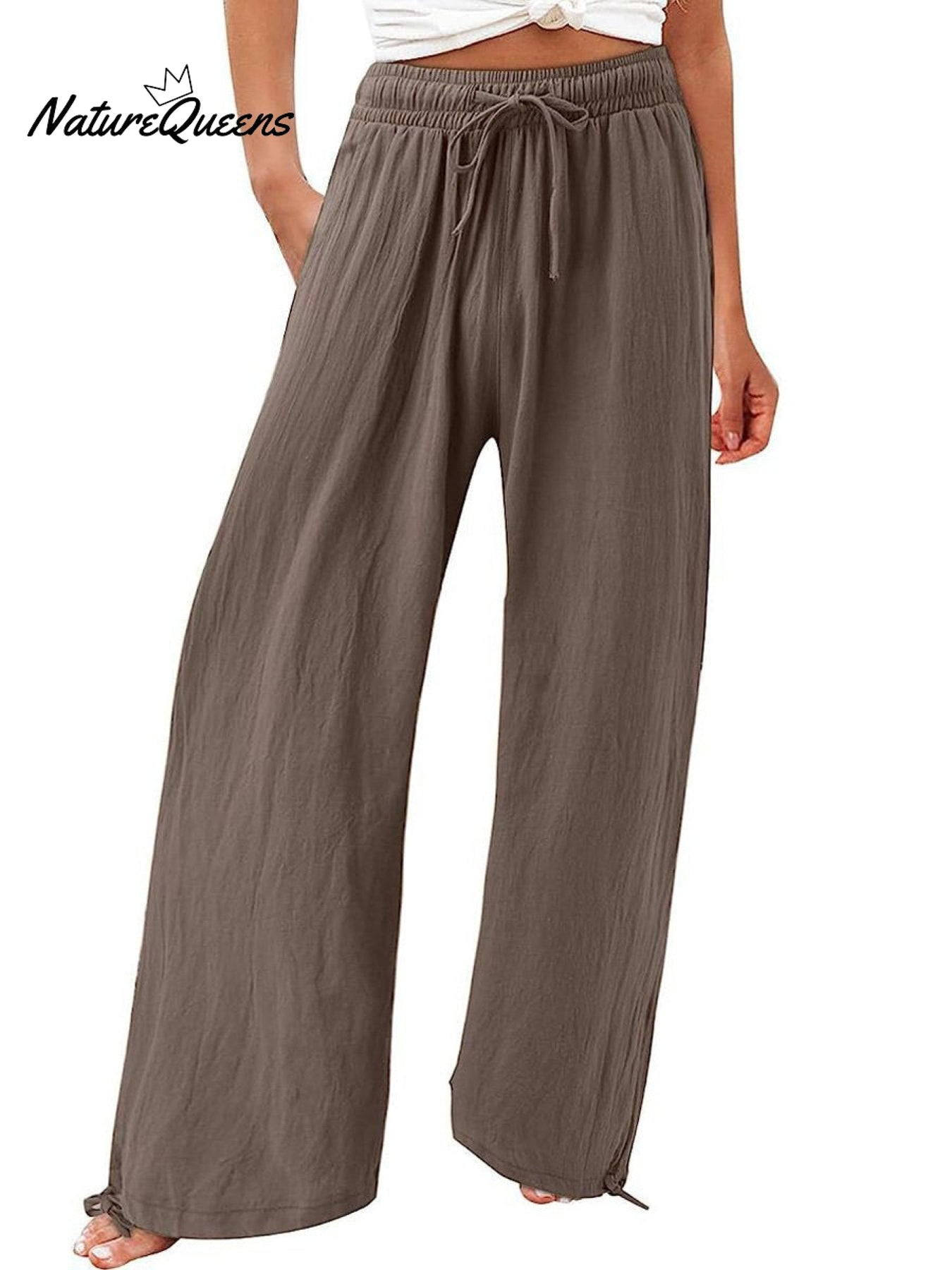 Damen Baumwolle und Leinen Weite Bein Freizeit-Hosen