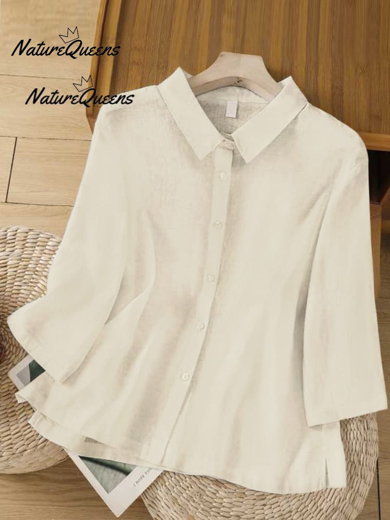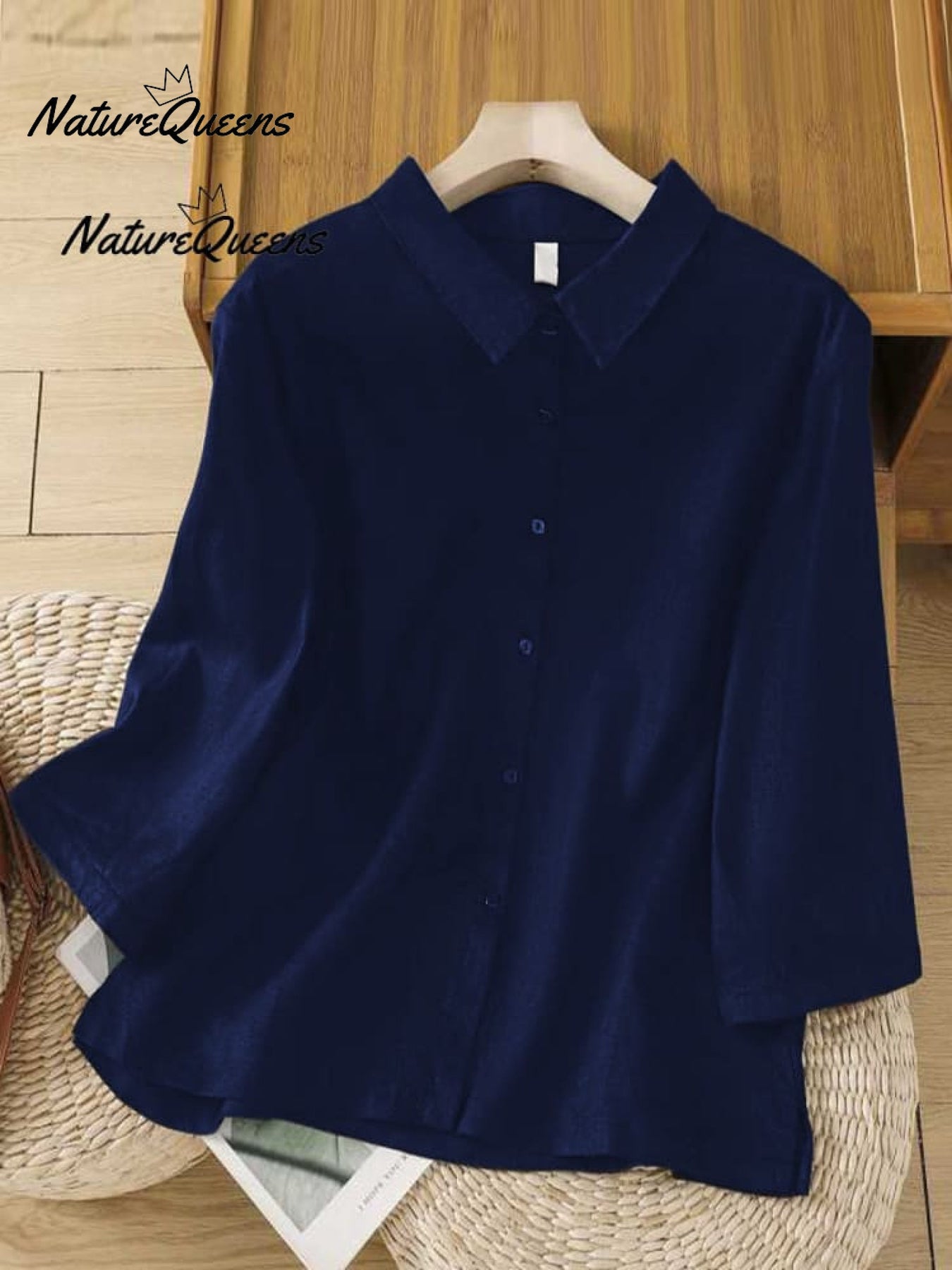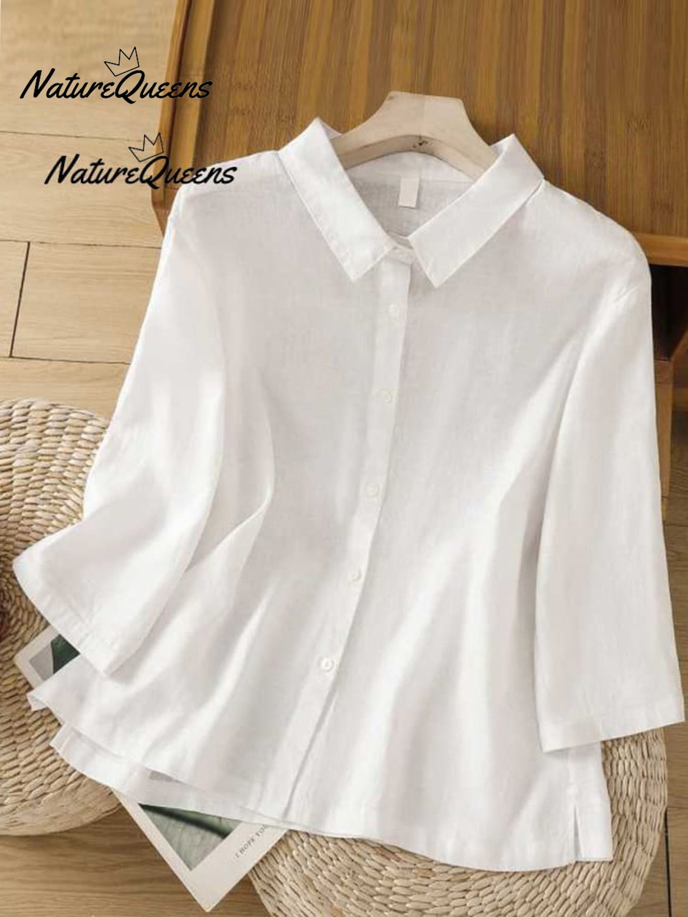 Damen Einfarbige Knopf-Halb-Elastische Hohe Taille Freizeit Baumwolle und Leinen Weite Hose