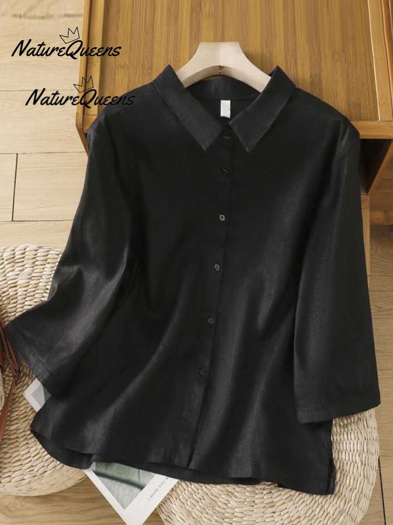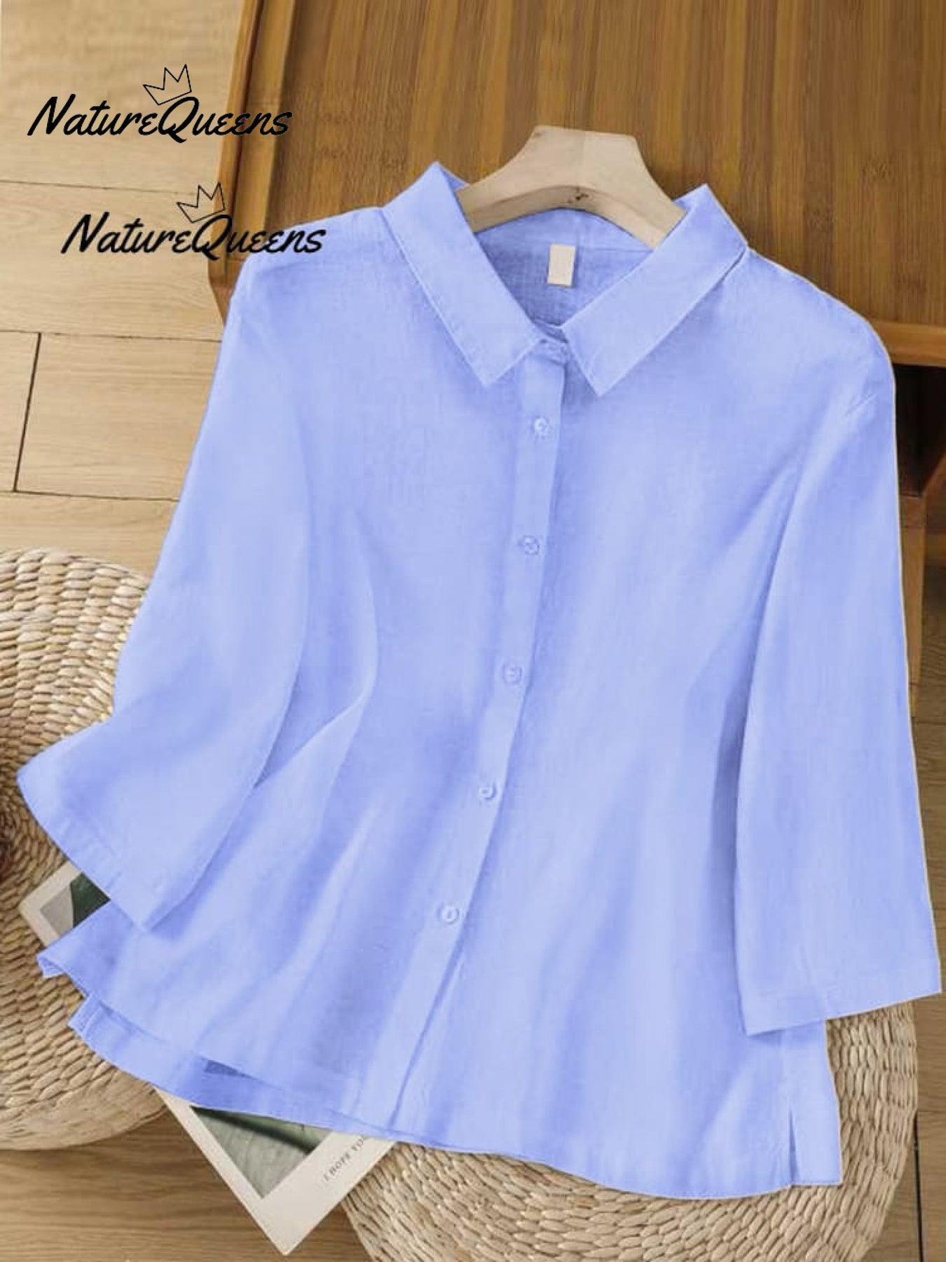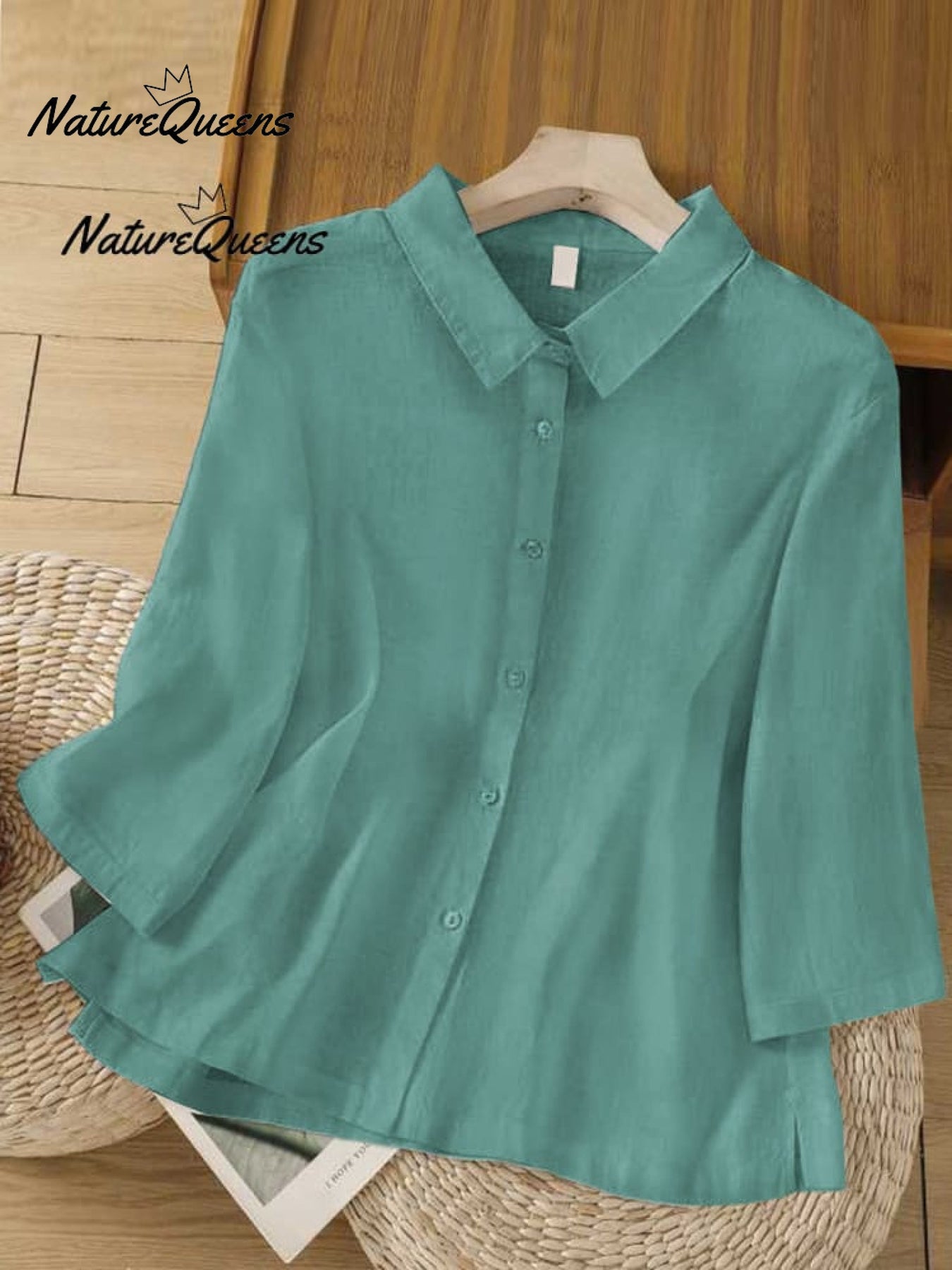 Damen Einfarbige Knopf-Halb-Elastische Hohe Taille Freizeit Baumwolle und Leinen Weite Hose
