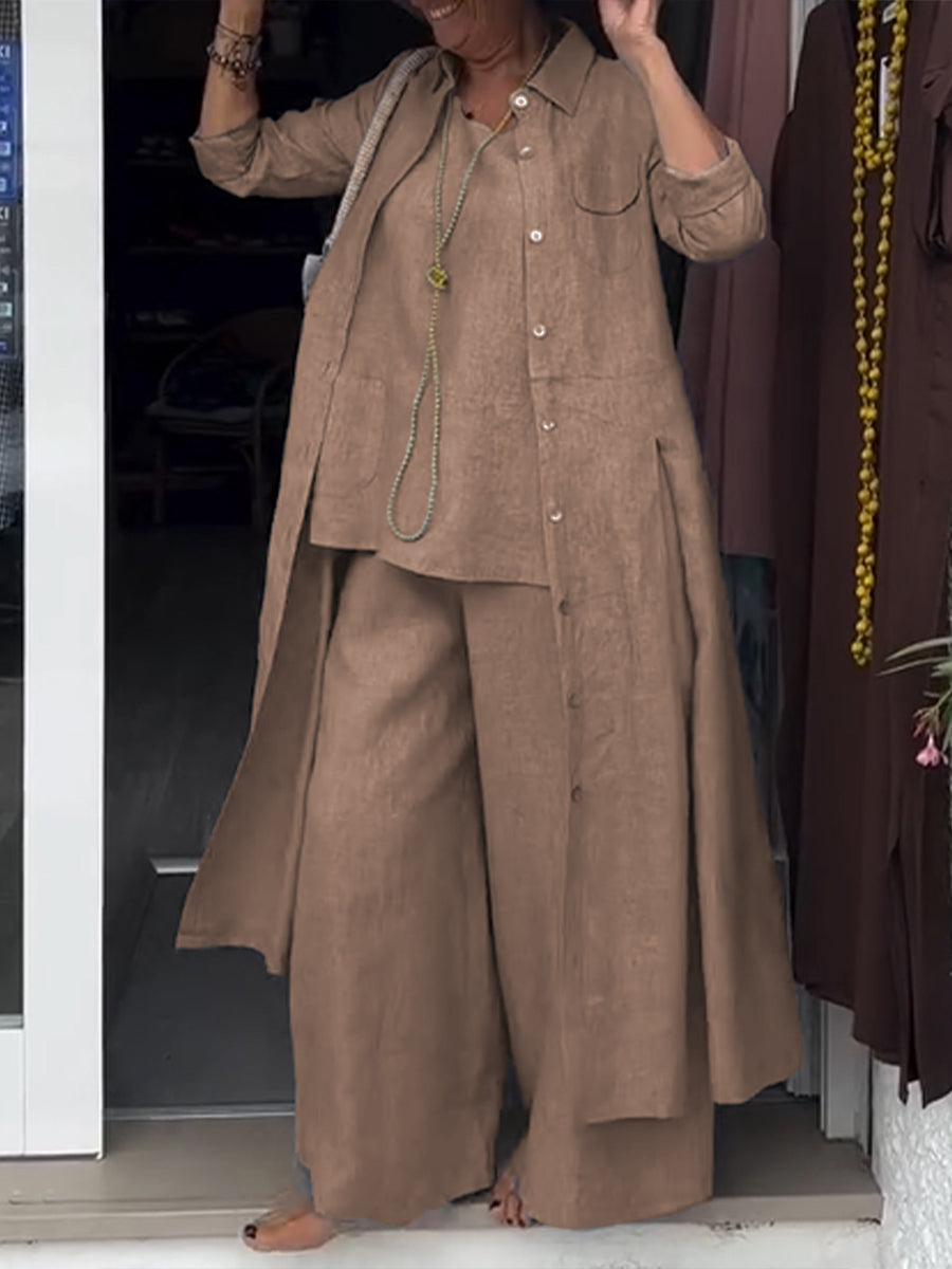 Damen Freizeit Hemd aus Baumwolle und Leinen mit langen Ärmeln