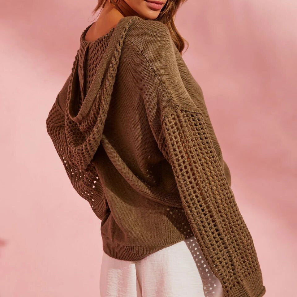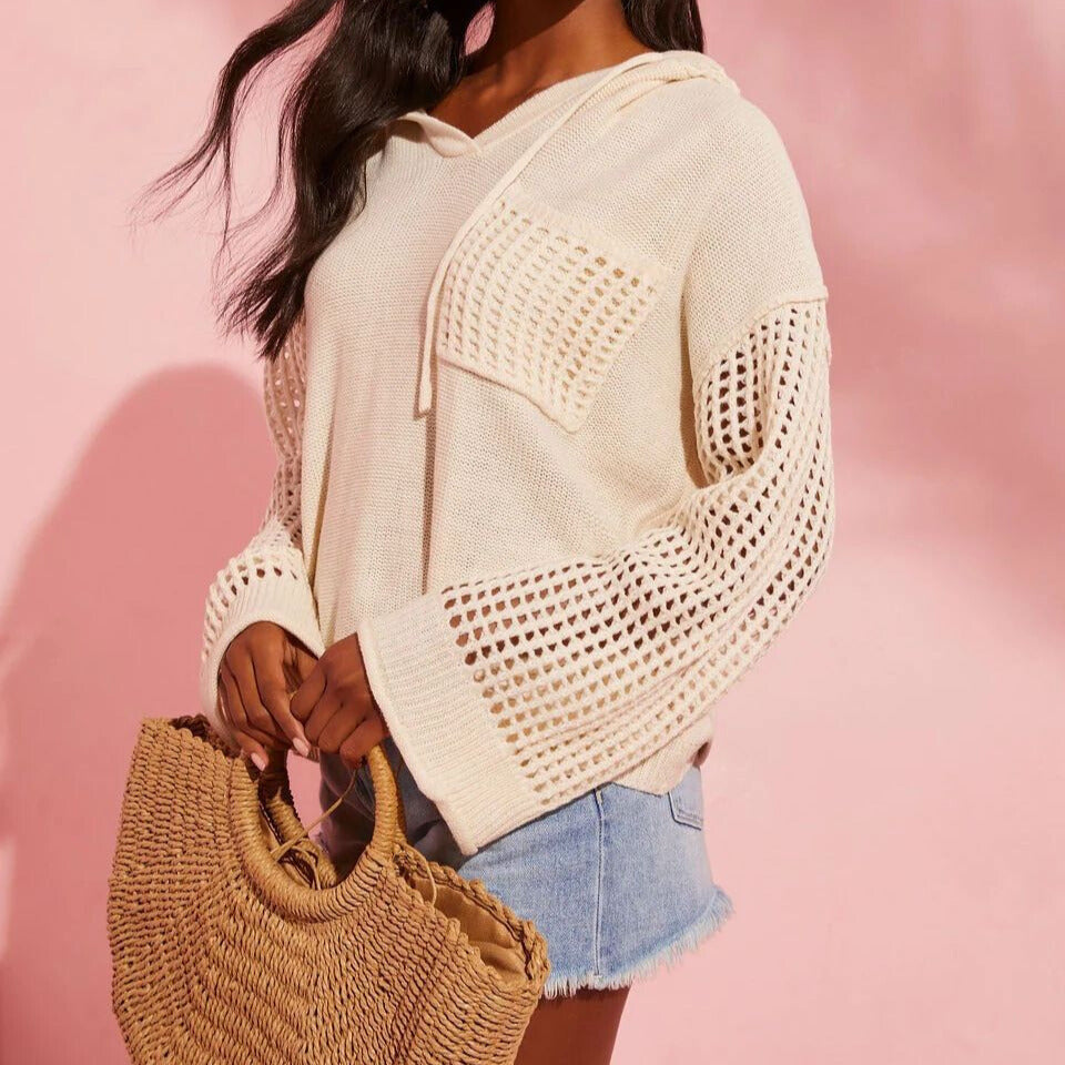Aus einer leichten Baumwollmischung gestrickt, bietet dieser Hoodie atmungsaktive Wärme mit einem entspannten, übergroßen Schnitt. Perfekt für den Übergang der Jahreszeiten, eignet er sich als gemütliche Winterlage oder als stilvolles Einzelstück für das ganze Jahr.