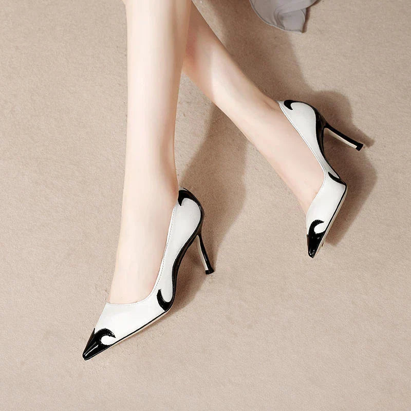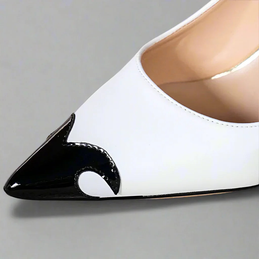 • Elegante spitze Zehenpartie mit skulptierten Kurven
