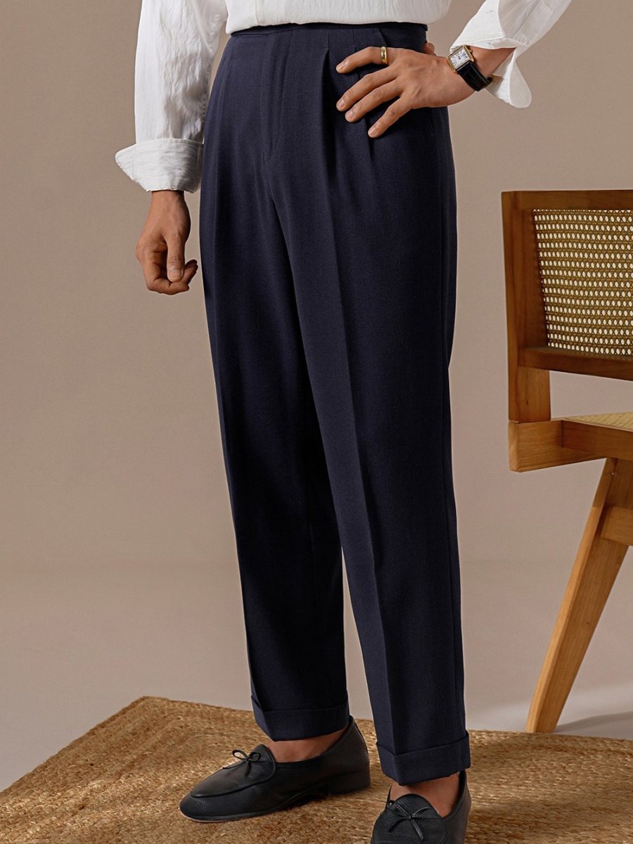 Maßgeschneiderte Hose mit doppelten Falten und einem luftigen, strukturierten Gefühl. Entworfen für raffinierte Sommeroutfits und mühelosen Stil.