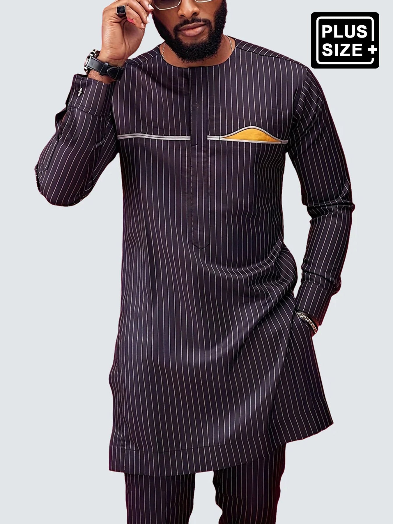 Wir präsentieren unser Plus Size Gestreifter Druck Langarm Herren Set - die perfekte Passform für jeden skurrilen, lebensfrohen Mann! Bleiben Sie stilvoll und bequem mit diesem einzigartigen Set, das einen trendigen Streifenprint und lange Ärmel für zusätzliche Wärme bietet. Sie werden das Gesprächsthema der Stadt in diesem verspielten und vielseitigen Set sein.