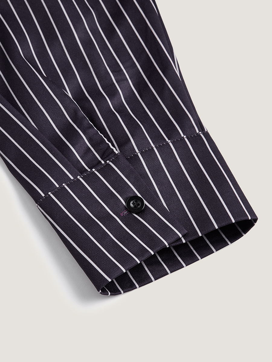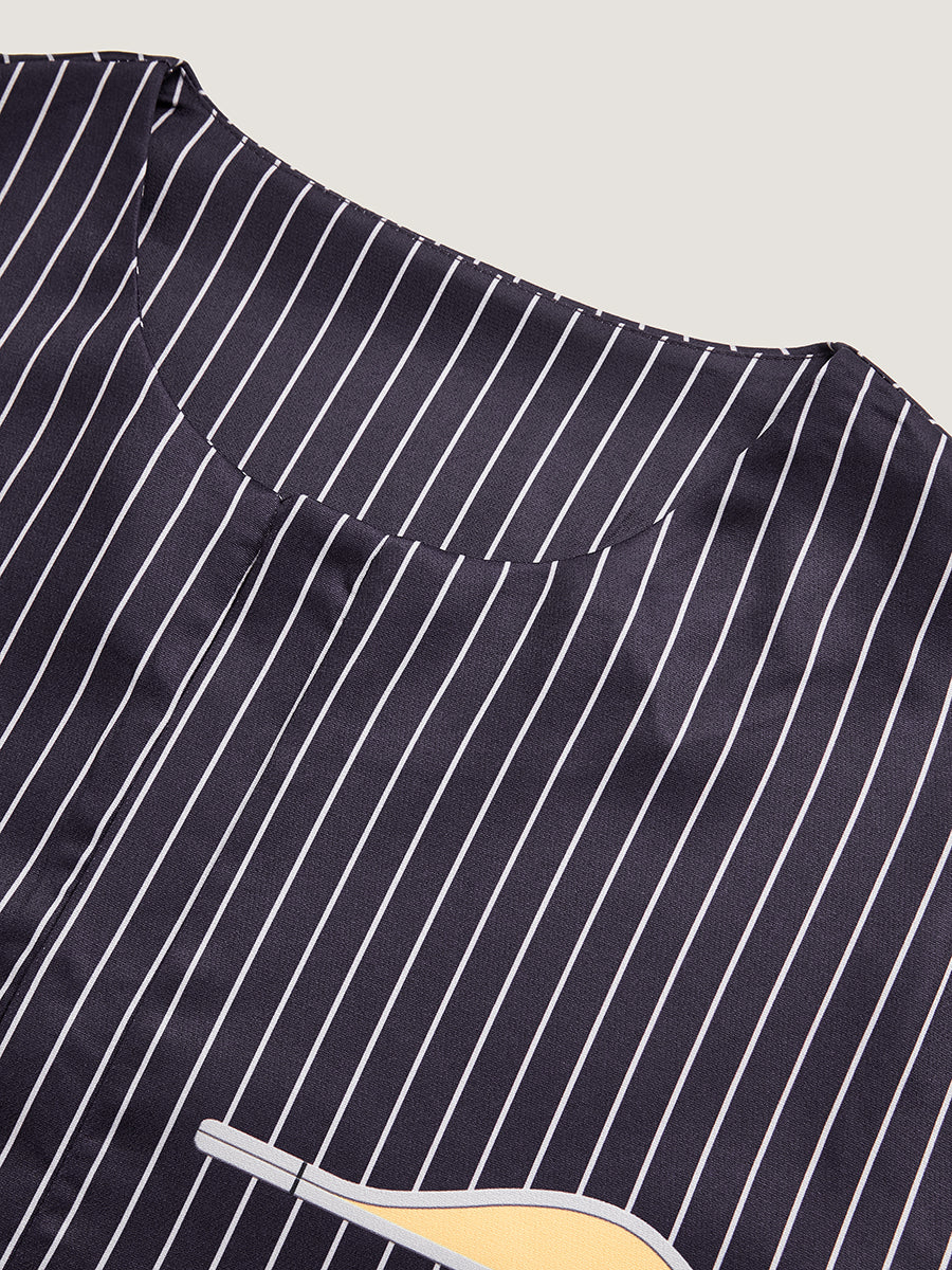 1. Stylisches Design: Gestreifter Druck, Lederpatch und Fake-Taschen-Design schaffen einen auffälligen Look.