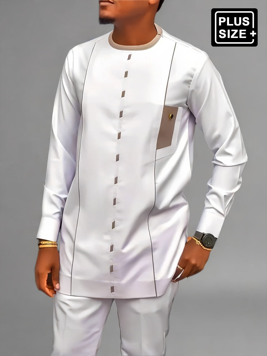 Nehmen Sie Ihren Stil mit unserem Plus-Size Neuen Weißen Bestickten Herren-Set auf die nächste Stufe! Dieses Set verfügt über einzigartige Stickdetails auf einem klaren weißen Stoff, der Sie von der Menge abhebt. Perfekt für jede lässige oder formelle Veranstaltung, wird dieses Set sicher ein Statement setzen und Sie den ganzen Tag über bequem halten. Aktualisieren Sie noch heute Ihre Garderobe!