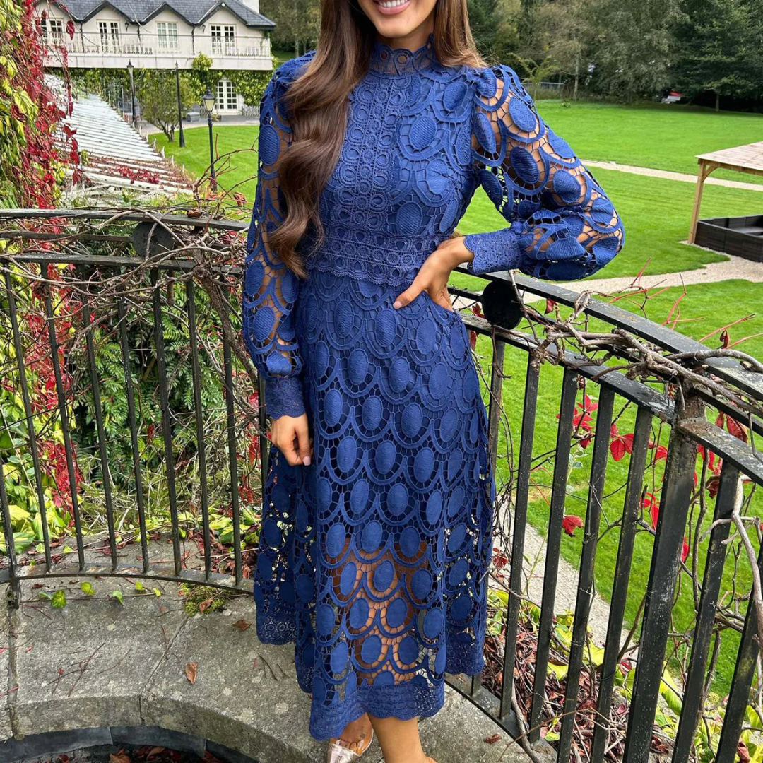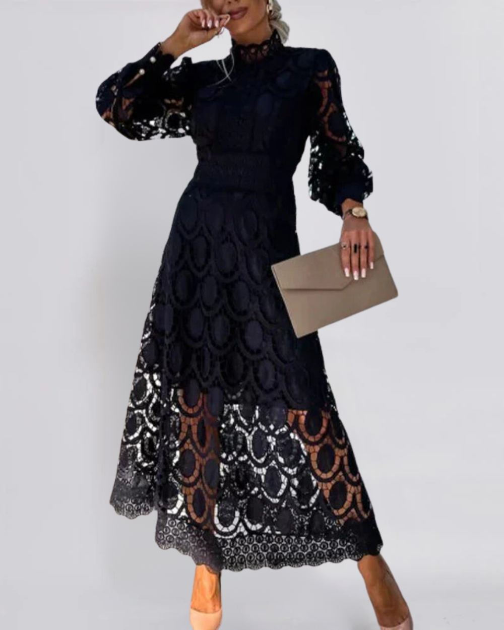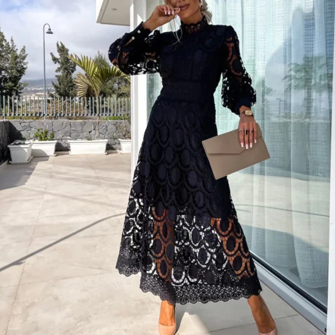 Das Sophia Kleid vereint klassische Eleganz mit modernen Details. Die feinen Spitzenelemente und der taillierte Schnitt schmeicheln der Figur, während die fließende A-Linien-Silhouette für eine anmutige Bewegung sorgt. Die langen Ärmel und der hochgeschlossene Ausschnitt verleihen dem Look eine raffinierte Note – ideal für besondere Anlässe oder elegante Alltagslooks.